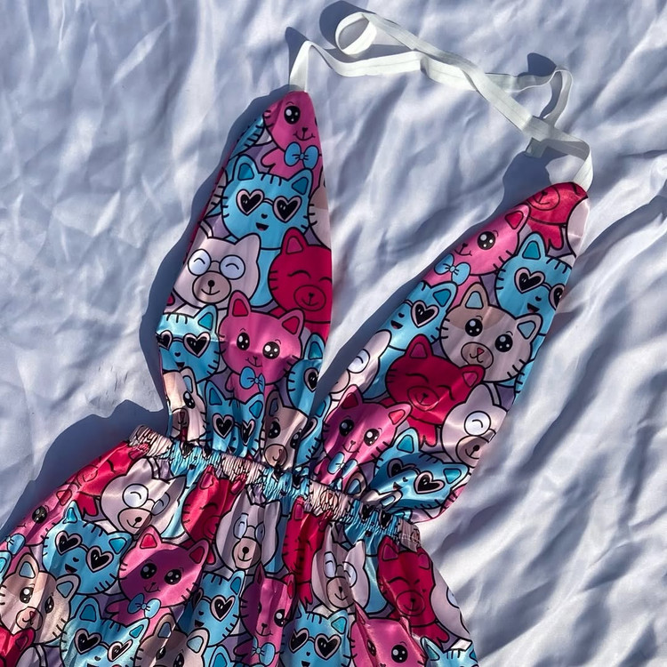 مدلِ خرگوشی ، طرح دار در سه طرح و رنگِ متفاوت و جذاب ( ابر ، کیتیِ بزرگ ، گربه کوچولو ) جنس : ساتنِ ال ایکس فری سایز تا 48 قدِ لباس : 83 دورِ کمر : 60 سانتی متر در حالتِ کشسانی : 120 سانتی متر