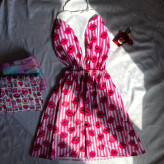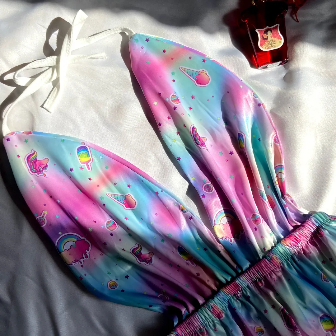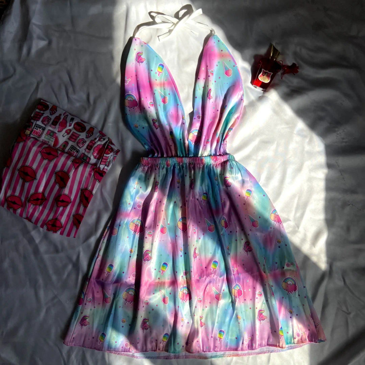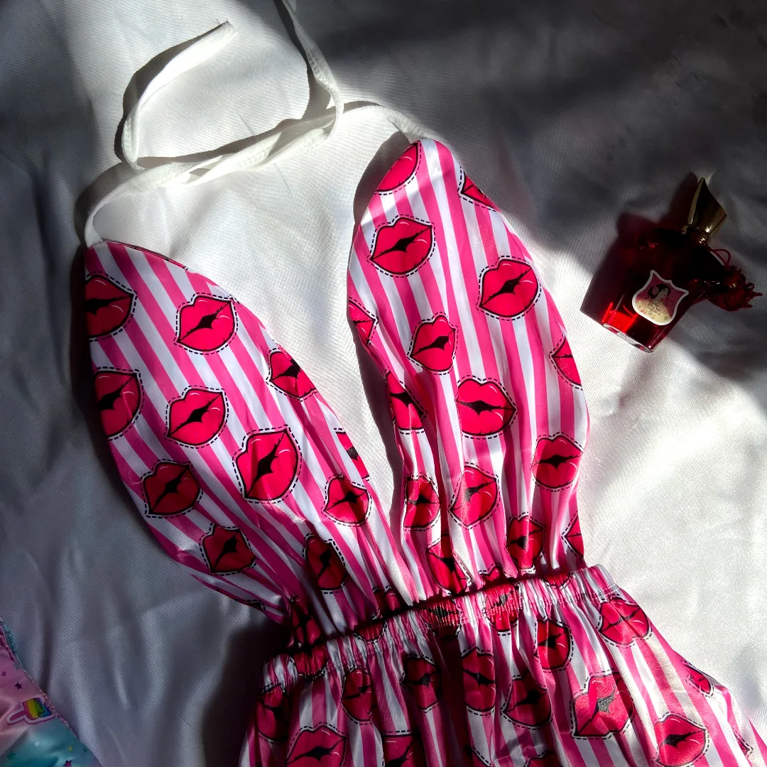 لباس خواب ساتن طرح دار خرگوشی در سه طرح و رنگ متفاوت و جذاب ( بوسه ، رنگین کمان ، فلامینگو ) جنس : ساتن ال ایکس فری سایز تا 48 دور کمر : 60 در حالت کشسانی : ۱۲۰ قد لباس : ۸۳