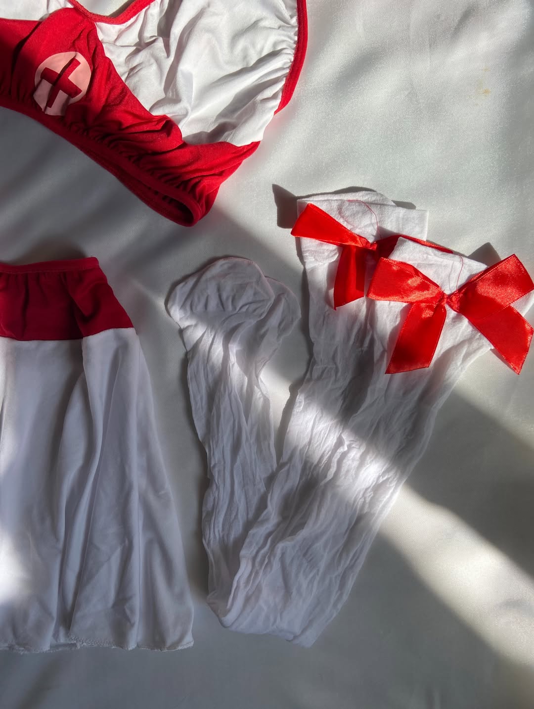 همراه با جوراب ساق بلند بند قابل تنظیم ست کامل ۵ تیکه تنخور بسیار جذاب. 📍سایز : فری سایز تا 44 ( دور کمر دامن : 50 / در حالت کشسانی : 90) ( قد دامن : 29 ) (دور کمر نیمتنه : 52 / درحالت کشسانی : 100)