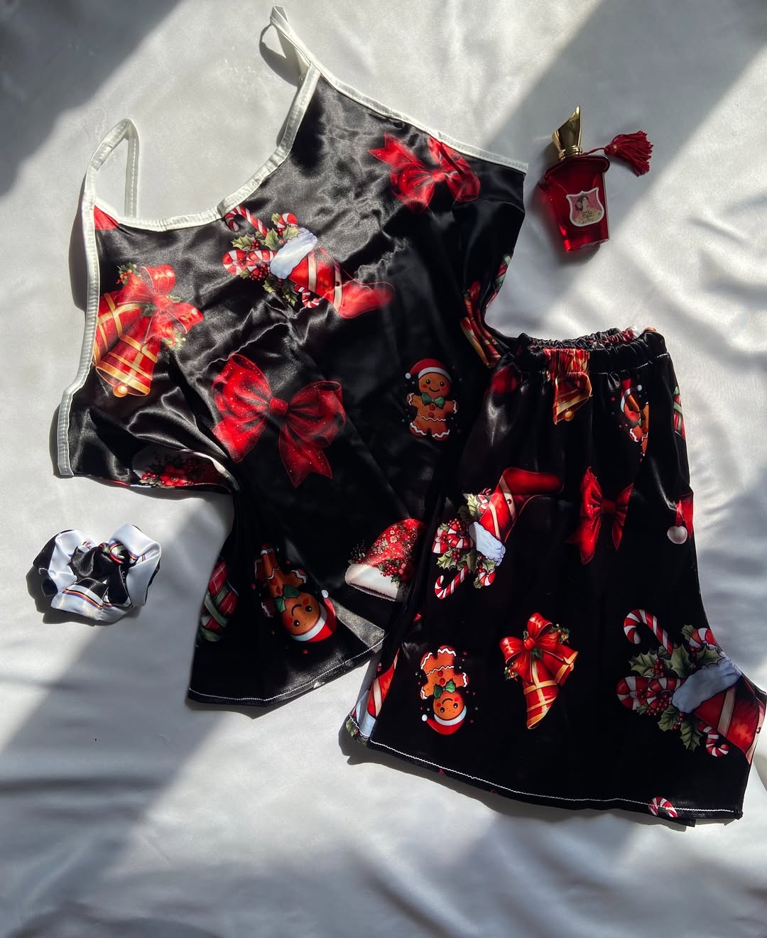 ست ساتن سه تیکه گلی کد 52 (تاپ، شورتک و اسکرانچی)